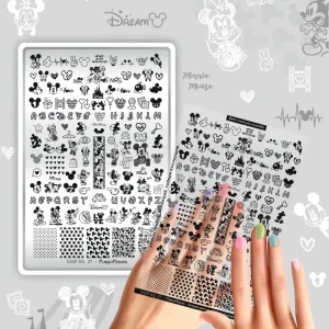 Dodaj odrobinę uroku i bajkowej magii do swoich stylizacji z dużą płytką do stempli nr 27 – Cartoon Love! Ta kolekcja pełna jest uroczych motywów, serduszek, zabawnych ikon i kreskówkowych inspiracji, które pozwolą Ci stworzyć słodkie, nostalgiczne i pełne radości zdobienia. Znajdziesz tutaj postać sympatycznej myszki, alfabet w bajkowym stylu oraz mnóstwo motywów związanych z miłością i przyjaźnią.
