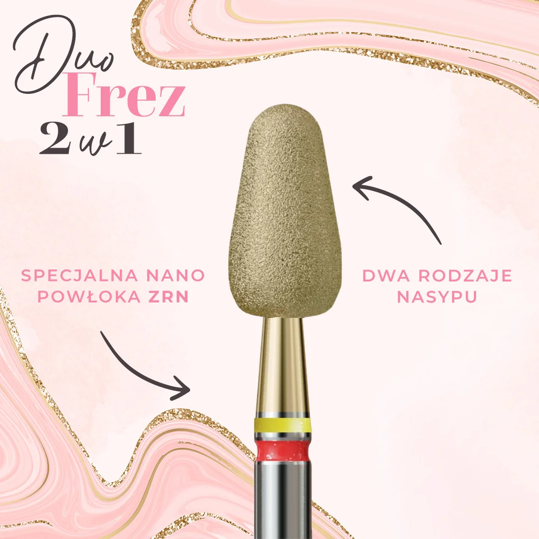 Na czym polega innowacyjność Duo Frezów? Otóż przestrzenie drobnego nasypu diamentowego zostały wypełnione dodatkowo bardzo drobnym nasypem, aby żywotność narzędzi została znacznie wydłużona. Teraz nie musisz obawiać się, że Twoje frezy szybko trzeba będzie wymienić na nowe i cieszyć się swoimi ulubionymi kształtami na długo.
